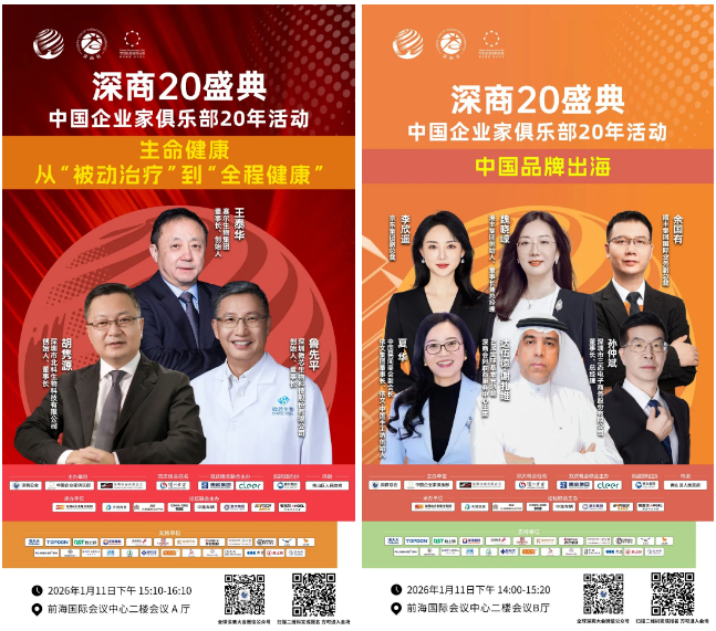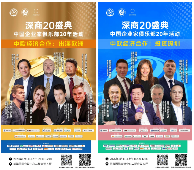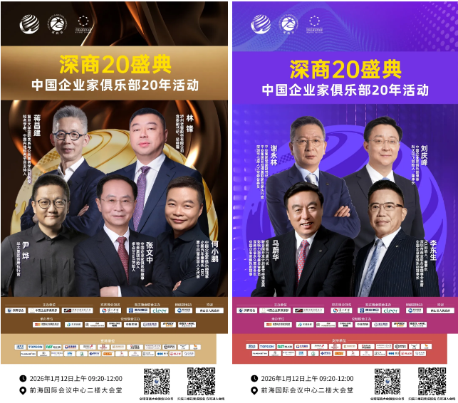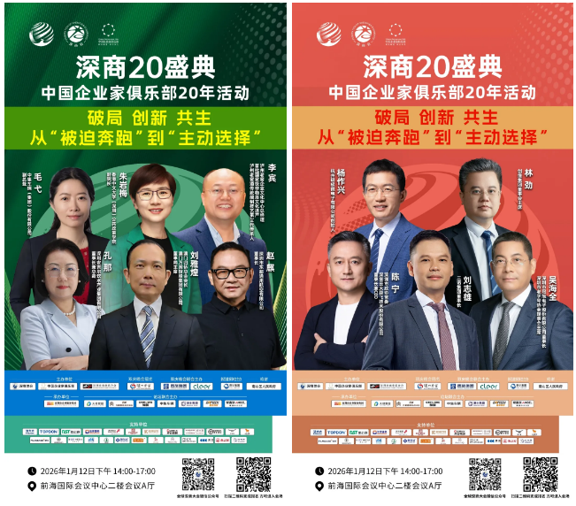 2026年1月11日至13日,深圳前海国际会议中心将迎来年度商业盛典--第九届深商盛典暨中国企业家俱乐部20年活动。10000+企业家、100+中外领袖、10多个商帮、100多家媒体已整装待发,共赴创新热土,解锁十五五开局之年的经济新征程。